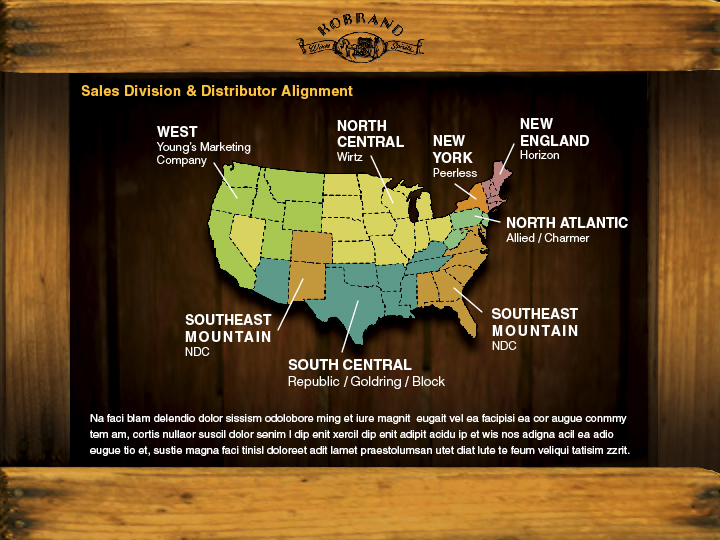 Sales deck used to educate liquor retailers about Kobrand's growing branch of Spirits as well as it's successful history as a wine distributor.