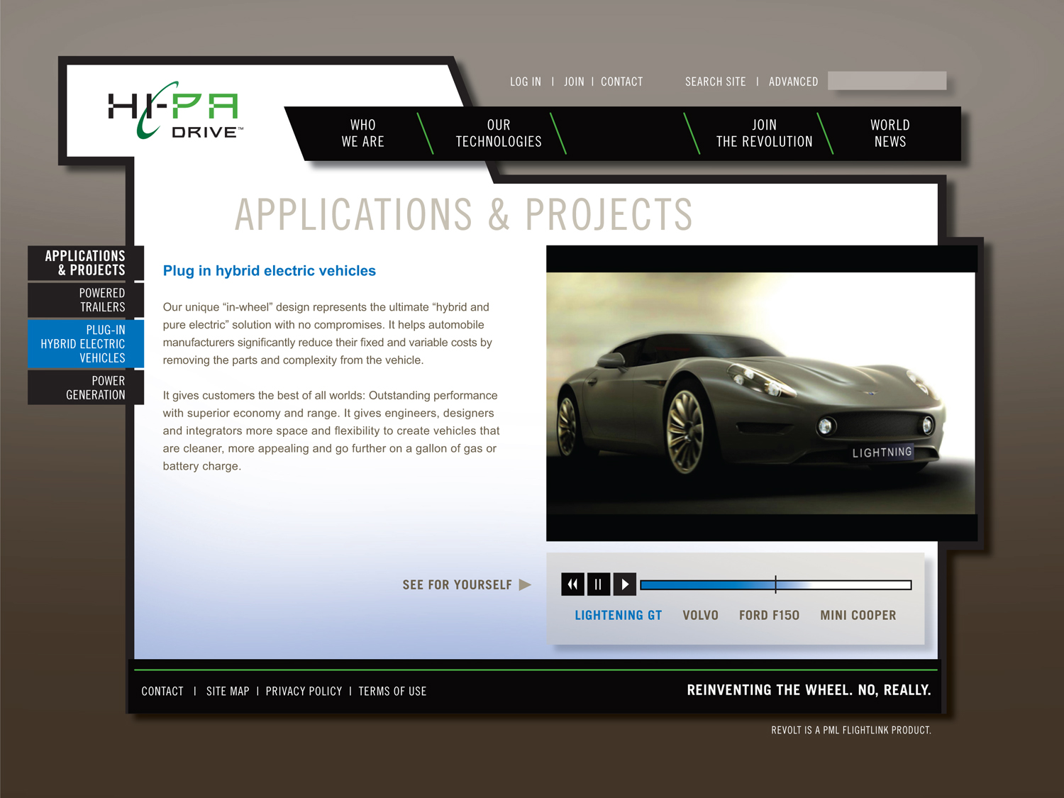 Web design for a revolutionary electric motor company committed to helping car designers eliminate oil dependency and carbon emissions, while adding more power, performance and design options.