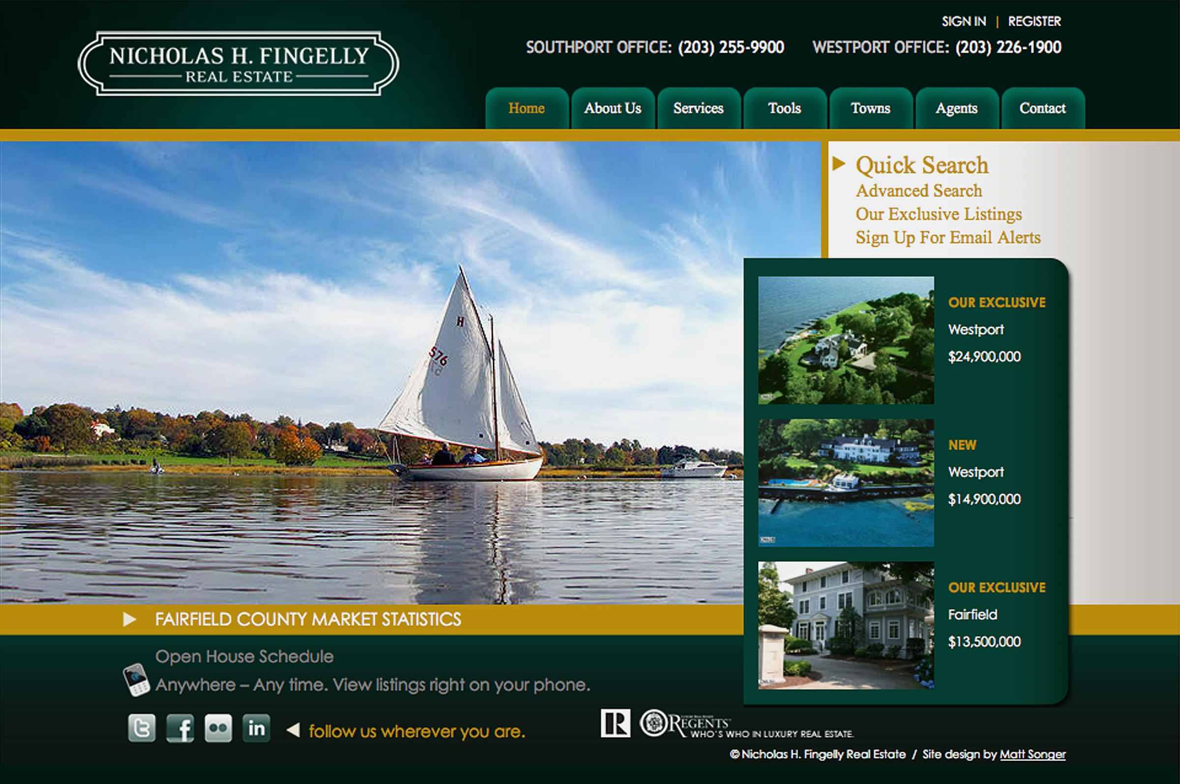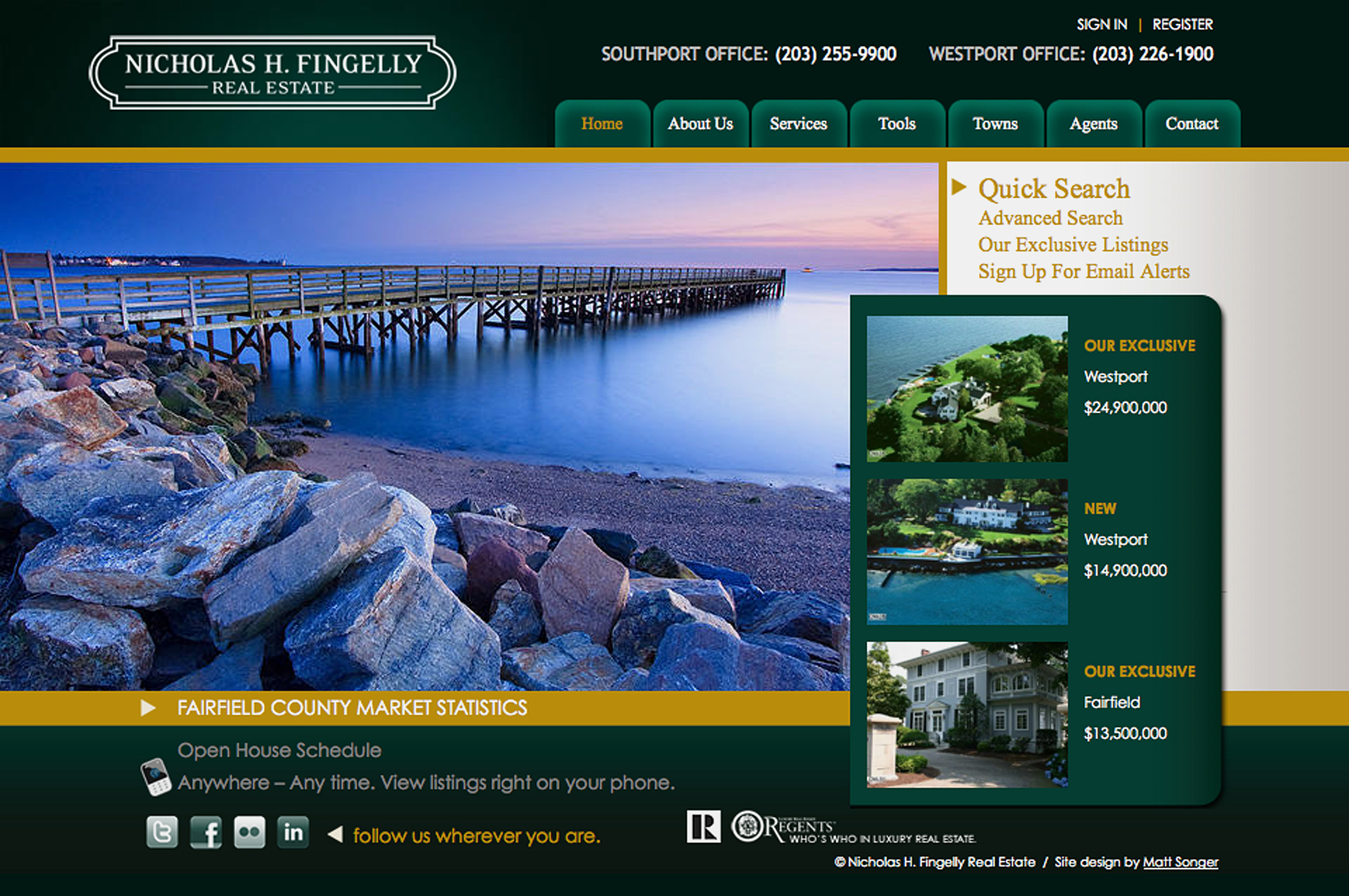 The Fingelly site was completely redesigned - going from 5 pages to over 25 robust pages. New features included social media site links ad instant access to house info and agents.