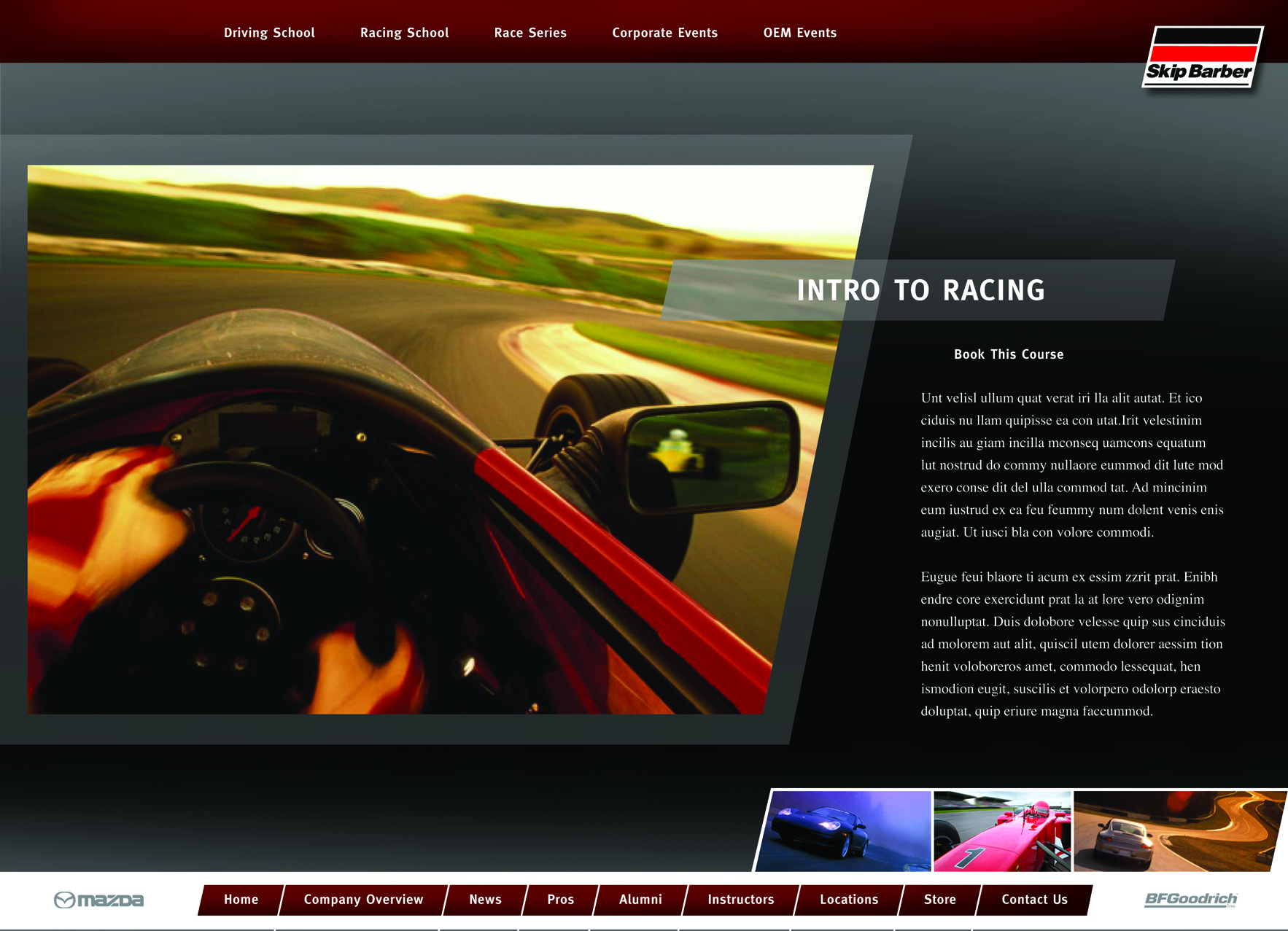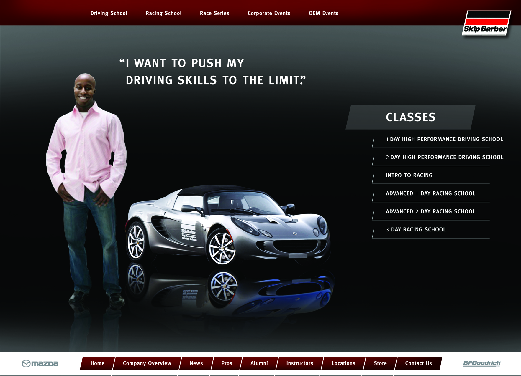 Web design for Skip Barber Racing School and it's long list of high-performance driving class and racing offerings.